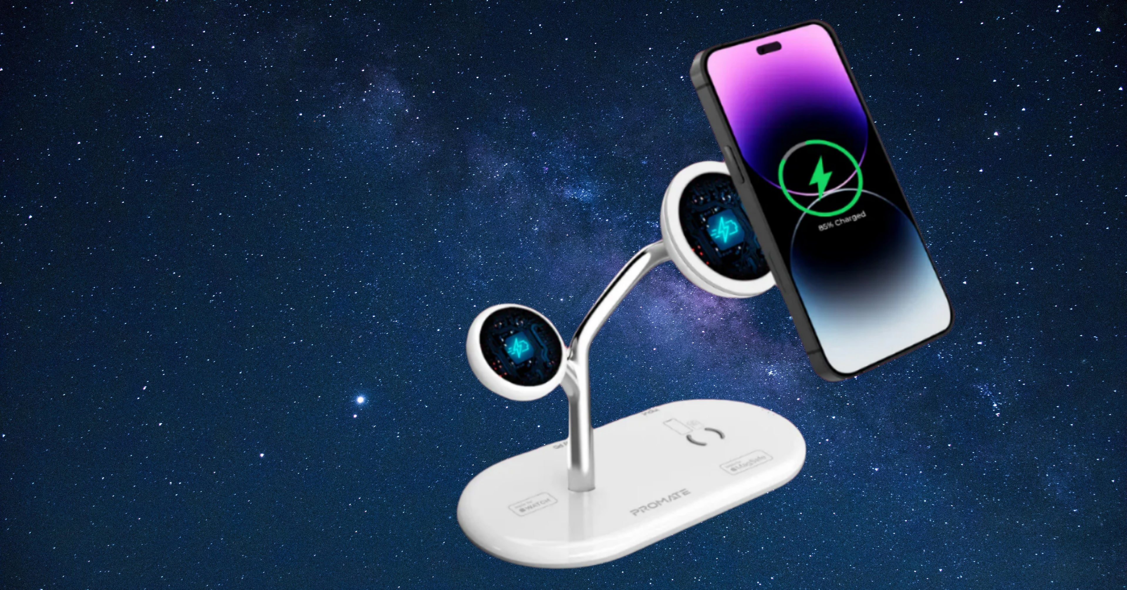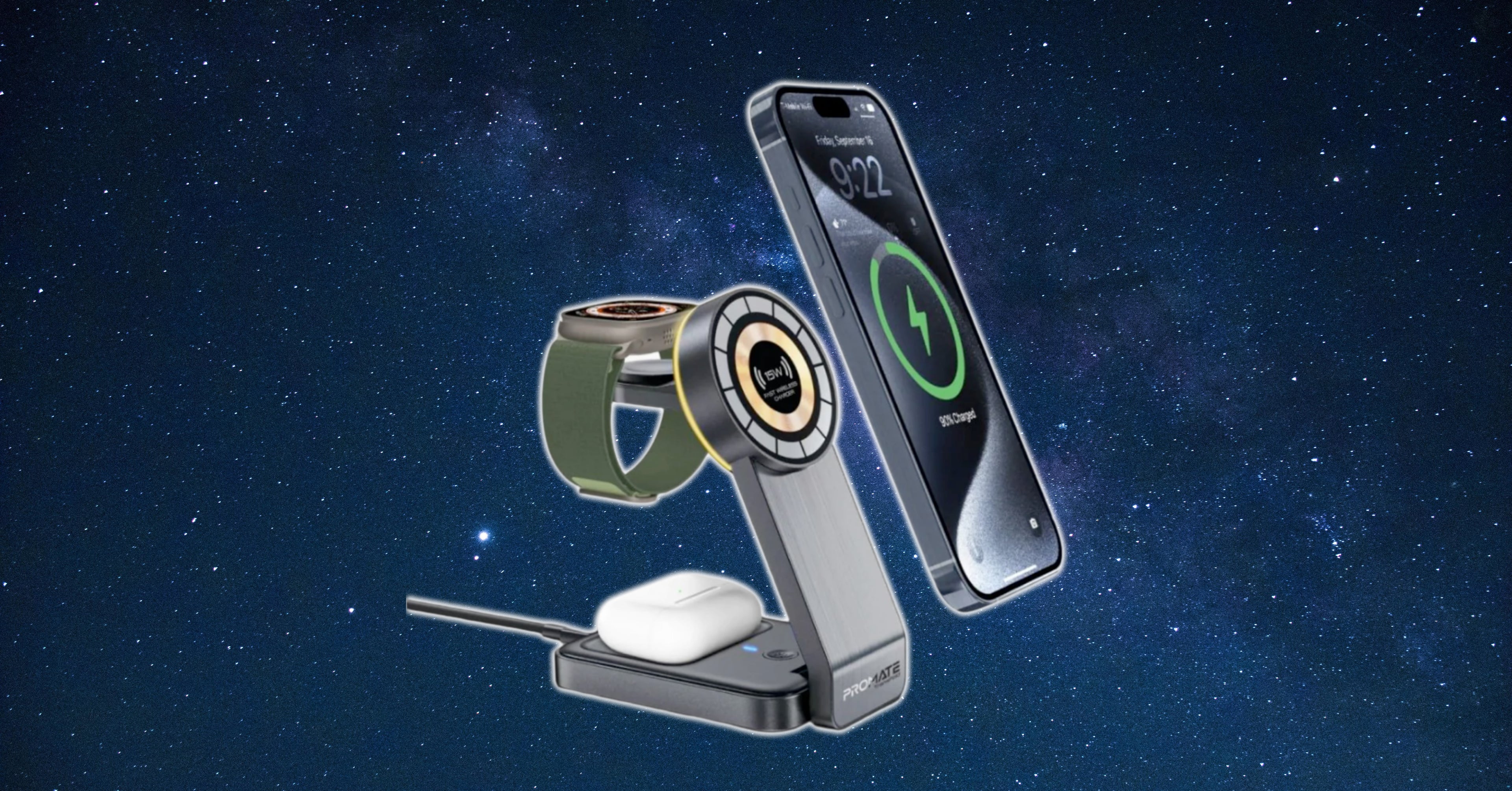 Dedicated charging modules for your smartphone, Apple Watch, and AirPods/AirPods Pro.