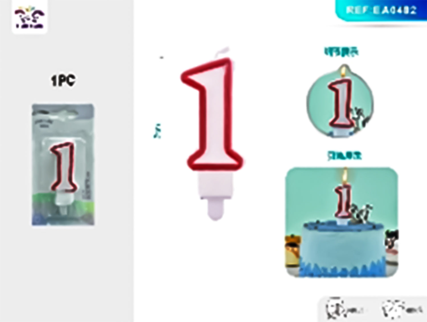 Birthday candles number 1 red border 9cm 1pc