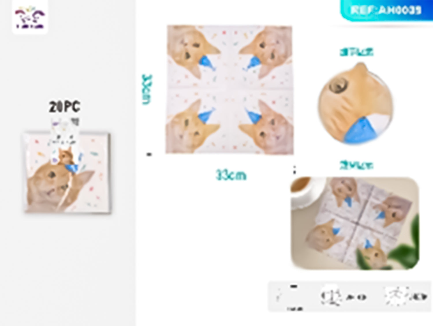 Enhance your table setting with our charming 3333cm cat napkins. These playful napkins are the perfect addition to any whimsical party, adding a touch of feline fun. Made to complement your existing tableware, they will bring a smile to your guests' faces while keeping things clean and tidy.