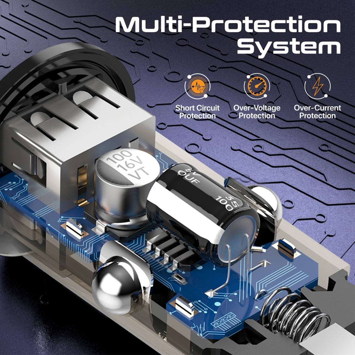 65W RapidCharge™ Transparent Mini Car Charger with Power Delivery & QC 3.0